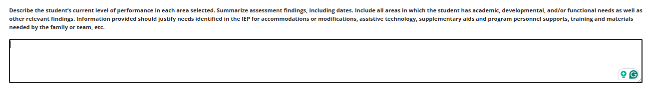Present Level Areas of Need OR Accommodations – State Testing and Student Supports