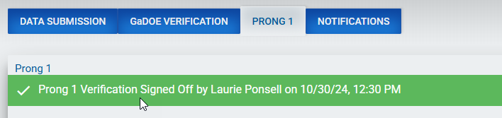 Screenshot of Completed Prong 1 Message