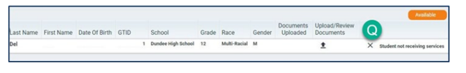 Screenshot of Student no longer receiving services