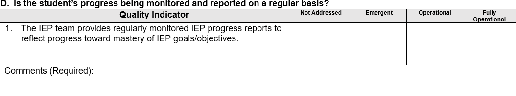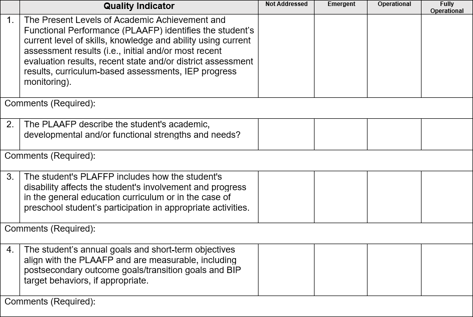 GaDOE staff will review each student file and rate each quality indicator on the four-point rubric and provide comments/feedback as needed.