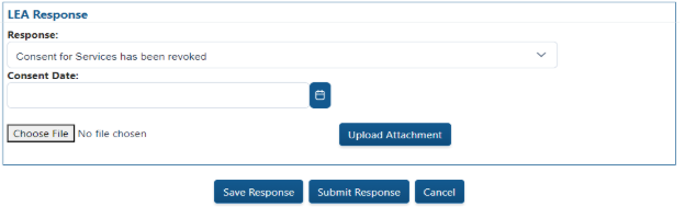 The student’s status will change to “LEA Responded” once the LEA submits the response. The response will continue to be editable until the student status is Archived.