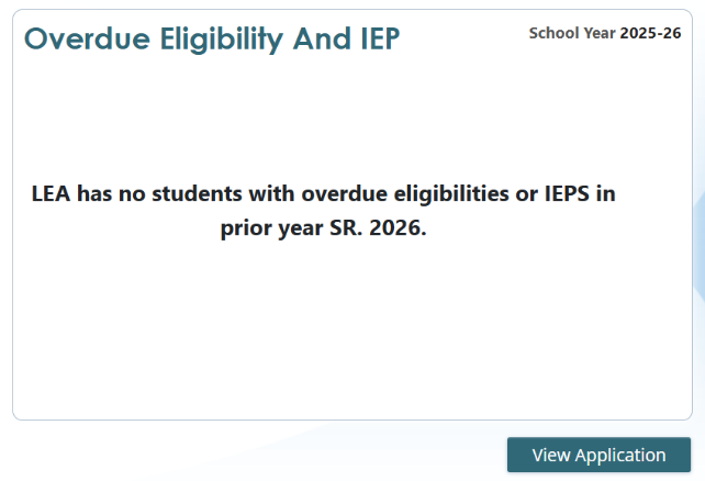 If your LEA sees the message below, “LEA has no students with overdue eligibilities or IEPs in prior year SR 2026,” no further action is needed.