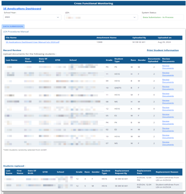 If students have withdrawn from the LEA or exit special education (no longer eligible or parental revocation) before the date of the file download, the CFM application allows for LEAs to request a replacement student for any student who has withdrawn or exited.