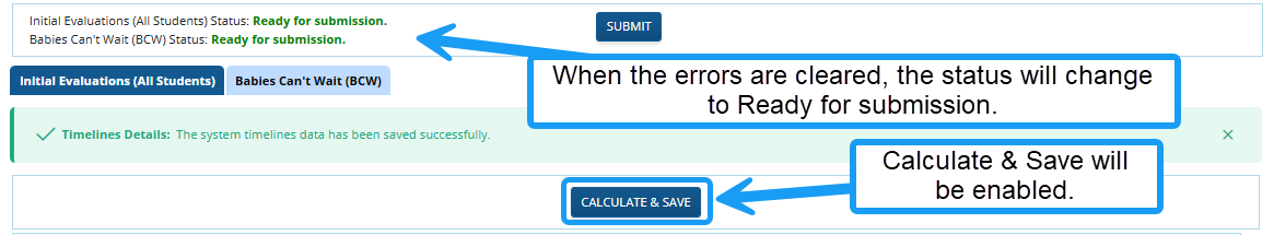 Screenshot showing the Timelines Report is ready for submission