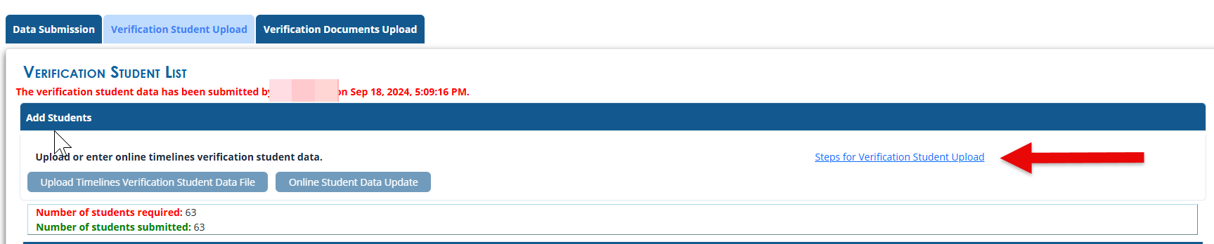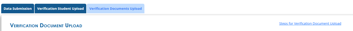 A link to Steps for Verification Student Upload is available on the Verification Student Upload tab. The help document shows how to upload students in a Excel or individually.