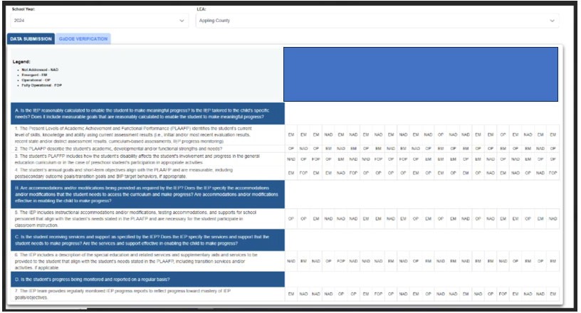 Screenshot of GaDOE’s Input page for the IEP review